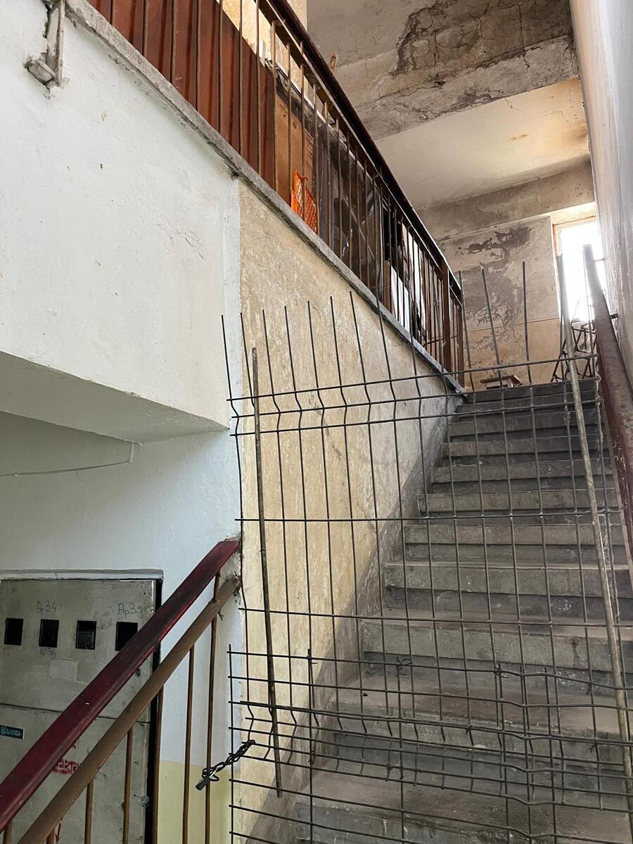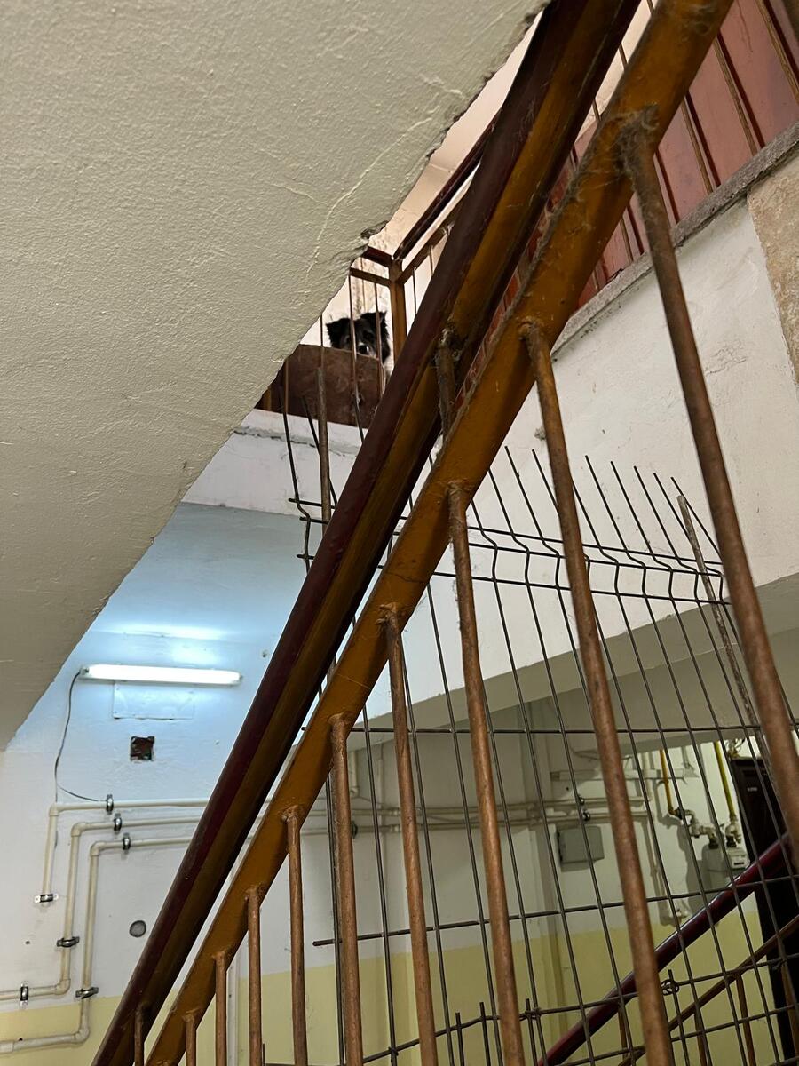 De la etajul 7 se vede foarte frumos orașul, Hotelul Europa și Școala 8, însă tot acolo atmosfera este din adăposturile de animale.